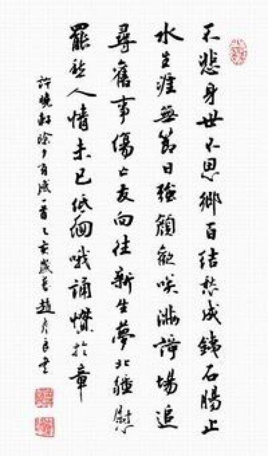 赵一曼诗《滨江抒怀》,周思言书。 周思言(1950 - ),上海市人。中国书协会员。此篇书体为楷体。