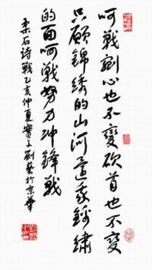 秋瑾《申江题壁》,沈鹏。 沈鹏(1931 - ),江苏江阴人。中国书协代主席。此篇书体为草书。