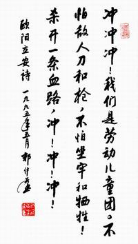 1930年5月1日,时任上海共青团沪东区委委员的欧阳立安组织500名童工参加在华德路跑狗场举行的劳动节纪念集会和示威游行。事前他连夜赶写出这首劳动儿童团歌,集会游行时小伙伴们正是高唱这首歌手挽着手,肩并着肩向黑暗的旧制度和反动势力英勇的抗争和呐喊,吓得前来镇压的反动军警巡捕胆战心惊。