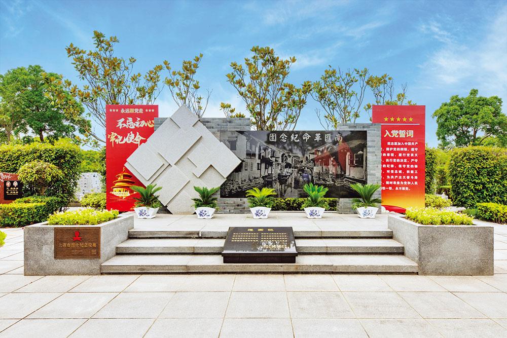 南汇革命纪念园始建于 2009 年,由纪念广场、纪念墙和纪念碑组成。 坐落于广场中心的纪念墙高 2.84 米、宽 6 米,灰色抽象石块取意“集结”, 象征革命先辈团结一心、浴血奋战的爱国精神。纪念墙背面刻有南汇革命英雄谱,记载了南汇籍和曾在南汇参加革命工作的外省市革命者的姓名, 其中烈士 380 人。