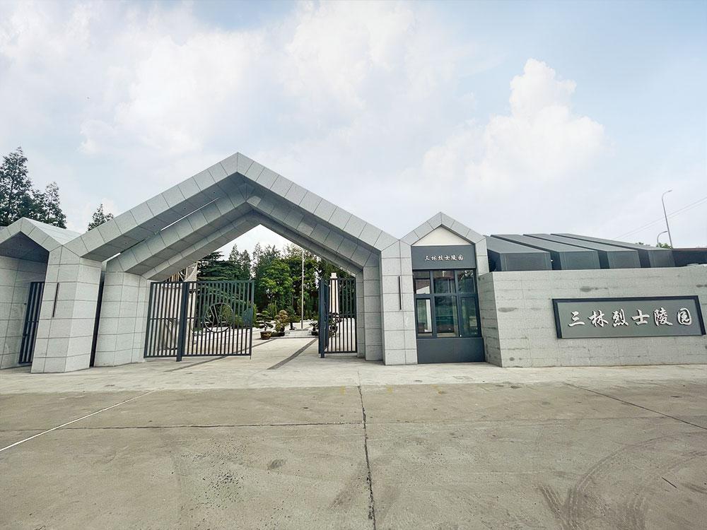 三林烈士陵园始建于 1987 年 3 月,于 2001 年、2019 年、2023 年三 次改扩建。陵园内建有纪念广场、烈士纪念碑、烈士墓区、烈士事迹陈列 室。纪念广场能容纳 1000 余人进行祭扫活动。纪念碑高 12 米,为金山石 材质,镌刻“革命烈士永垂不朽”8 个大字。与其比邻的是以“日月同辉” 为主题的铸铜雕塑。烈士墓区占地 400 平方米,沈干城、毛福余和王圆方 3 位烈士的遗骨安葬于此。陈列室面积 90 平方米,陈列着烈士的遗物、图 片资料等,主要展示了在抗美援朝时期和在保卫祖国、抗洪抢险中牺牲的 39 位烈士事迹。