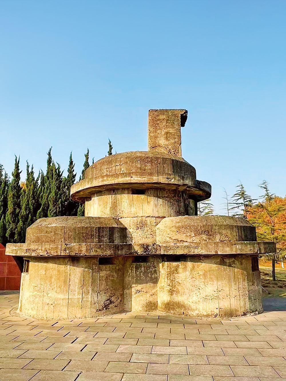 闵行文化公园烈士纪念地纪念 设施自东向西依次由漕宝路七号桥 碉堡、纪念碑、解放军勇士雕塑和 纪念广场 4 个部分组成。纪念地中 的七号桥碉堡是军事上的防守用坚 固建筑物,多用砖、石、钢筋混凝 土等材料建成,占地面积 30 平方米,高 7 米、长 6 米、宽 5 米。纪念碑用大理石材质建成,高 2.8 米、宽 6.5 米。1996 年建成纪念广场,1997 年 11 月解放军勇士雕像落成,基座 上刻有“革命烈士永垂不朽”。闵行区文化公园始建于 2006 年,漕宝路七 号桥碉堡遗址于同年进行了修缮保护。