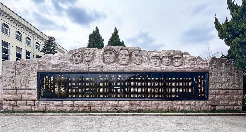 浦东新区烈士名录墙共收录了 523 位烈士的英名。烈士名录墙的上部 用花岗石圆雕组合成烈士头像,两边是花岗石的浮雕画面,左侧浮雕镌刻 着 1931 年时任共青团苏区中央局书记顾作霖写给共青团的题词——“休 损害宝贵的身体,莫辜负不再的韶光,伟大的事业,正需要你年青力壮”。