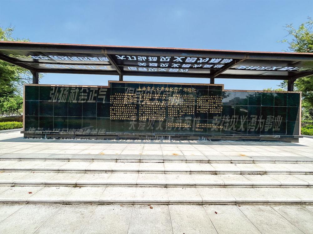 上海市见义勇为纪念广场位于上海市金山区亭卫公路与恒康路路口, 保护范围 20720 平方米,为金山区爱国主义教育基地。