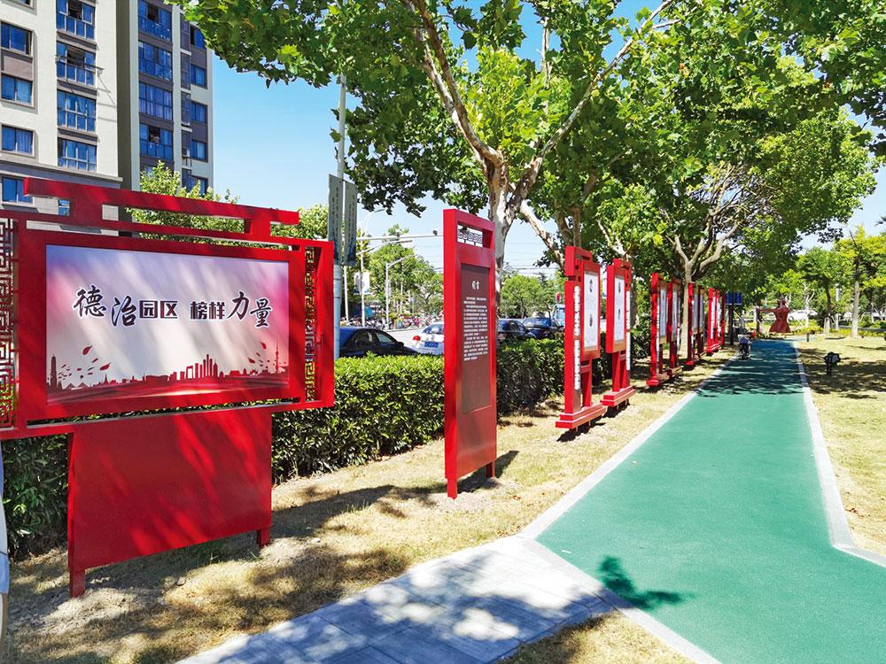 广场由浮雕纪念墙、标志塔、铺装活动区、瞻仰园林区、事迹展示长廊、“朱行榜样”步道等组成,展现见义勇为先进分子在邪恶、灾害、危 险面前舍身忘我、大义凛然的崇高精神,倡导弘扬正义、伸张正气的社会 好风尚。