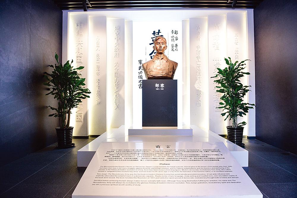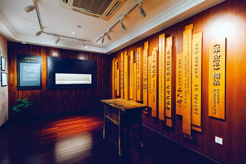 邹容纪念馆原为刘三故居黄叶楼,为三层建筑,占地 162 平方米,始建于 1934 年。馆内一层净展区面积 83.3 平方米,二层净展区面积 97.5 平 方米,三层面积 90.1 平方米,合计陈展面积约 270 平方米。展览分为“求 索之路”“革命号角”“苏报风云”“奕世流芳”四大版块,采用实物陈列、 图片、互动设施、视频及 VR 等多种展陈形式展现了邹容的生平事迹。