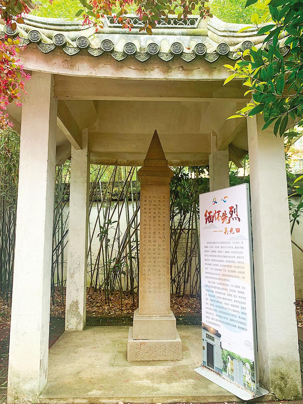 吴光田墓立于 1936 年。2008 年进行全面修缮,新设有照壁,并设置碑廊,介绍吴 光田烈士的生平。