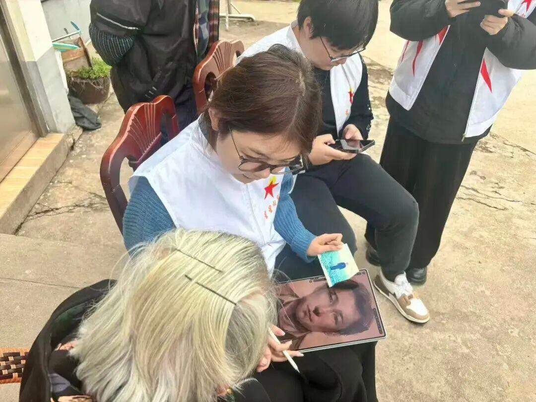 在邱阿荣烈士弟媳叶如娥家,当老人接过画像初稿时,她反复端详,嘴里不停地叮嘱:“鼻头再宽一点”“脸再方一点”“头发再精神一点”……大学生志愿者伏在桌边,按老人的要求一笔笔修改,每改动一处,老人就点头肯定,“这样有点像了”“现在很像了”。老人告诉记者,丈夫是烈士的亲弟弟,几年前已离世,家中只剩她一人还记得哥哥的模样。“趁我还在,一定要把哥哥的样子画准了。”志愿者还按照老人的心愿,给烈士画像“穿”上了志愿军军装,让那位18岁就牺牲的战士,以最英武的模样与家人“重逢”。志愿者与烈士家属沟通画像细节