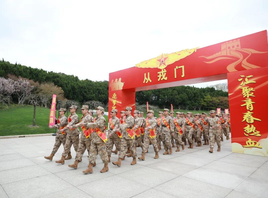 春风启征,策马扬鞭。伴随着激昂嘹亮的军歌响起,新兵们整齐列队,迈着坚定的步伐依次走过“从戎门”。跨过这扇门,他们便告别家乡的温柔,向着军营、向着祖国最需要的地方坚定前行。在军营这方大熔炉中,这群热血青年终将淬火成钢,以青春为笔、以热血为墨,书写保家卫国的壮丽篇章,用忠诚与担当,诠释新时代青年的使命与荣光。