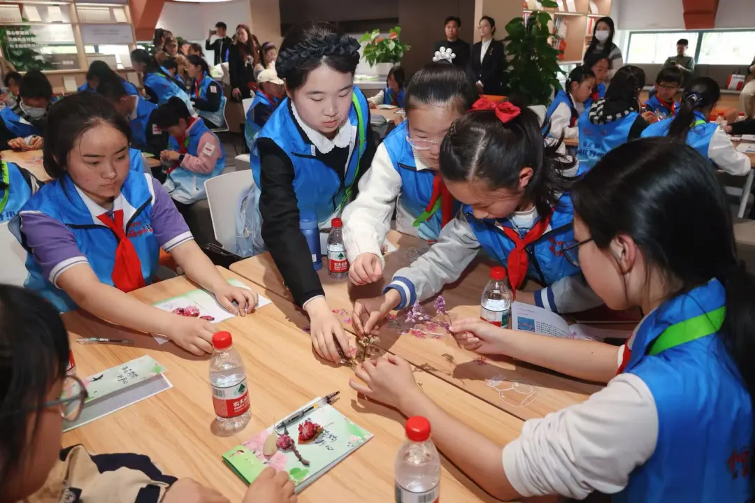 第四站,凝结心间桃花。同学们围坐在教室,将亲手拾捡的桃花瓣细细整理、小心压平、用心制作,一枚枚精致的压花书签在指尖悄然成形。枝头易逝的春光,被定格成可触可感的永恒;短暂绽放的桃花,化作可以长久珍藏的“心间桃花”。这小小的书签,不仅留住了春天的色彩,更承载着对英烈的缅怀、对生命的珍惜、对美好的向往——敬意与温柔,都在这一枚枚书签里被好好安放。